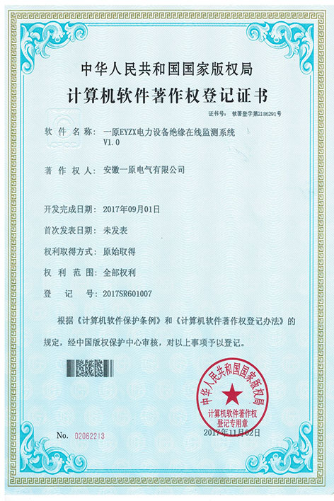 根據(jù)《計(jì)算機(jī)軟件保護(hù)條例》和《計(jì)算機(jī)軟件著作權(quán)登記辦法》的規(guī)定,經(jīng)中國(guó)版權(quán)保護(hù)中心審核,我公司EYCK開(kāi)關(guān)柜智能操控系統(tǒng)和EYZX電力設(shè)備絕緣在線監(jiān)測(cè)系統(tǒng)近日取得中華人民共和國(guó)國(guó)家版權(quán)局計(jì)算機(jī)軟件著作權(quán)登記證書(shū)。
