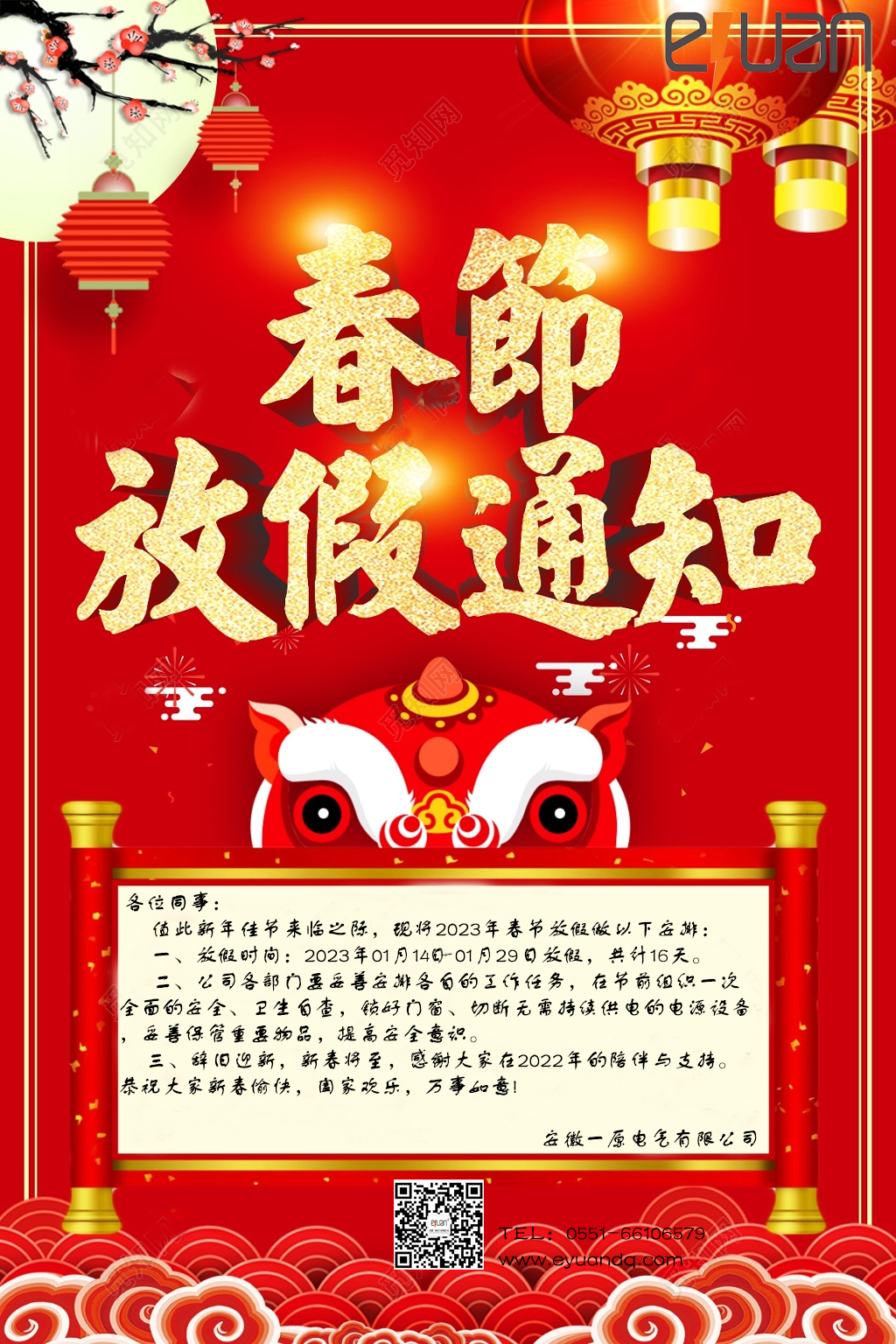 2020年安徽一原電氣科技有限公司春節(jié)期間放假日期安排